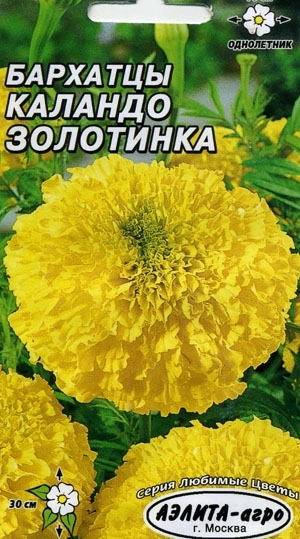 Предлагаем Вам новый сорт бархатцев серии Каландо. Крепкий, мощный, высотой до 30 см. хорошо ветвистый кустик с обилием бутонов и привлекательных крупных, махровых до 10 см в диаметре соцветий, золотистой окраски, порадуют Вас продолжительным цветением.