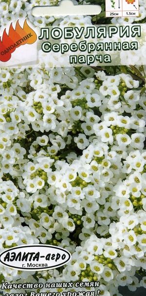 Lobularia martima annual Silver Snowcloth Обильно и продолжительно цветущее почво-покровное растение. Образует густоветвистые компактные кустики высотой до 25 см. Листья мелкие, линейно-ланцетные, серовато-зелёные, опушены белыми волосками. Мелкие, белые цветки собраны в кистевидные соцветия. Цветет с июня до глубокой осени. Широко используется в бордюрах и на каменистых горках, для озеленения балконов. Идеальна для окантовки клумб и рабаток. Прекрасный медонос, привлекает пчел-опылителей. Обладает чудесным сладким ароматом.