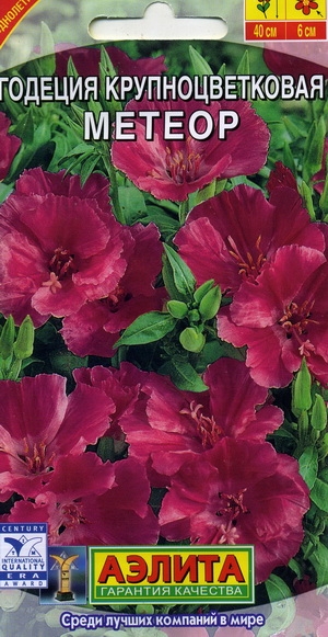 Godetia grandiflora double mix Крупноцветковая годеция покорит ваше сердце благодаря необыкновенно яркому, насыщенному оттенку цветов. Растение компактное, высотой 40 см. Атласные цветки чашевидной формы, диаметром до 5 см, волнистые по краям. Цветет обильно с июля по октябрь. Годеция очень красиво смотрится в рабатках, бордюрах, балконных ящиках и садовых вазонах. Срезанные цветы прекрасный материал для составления букетов.