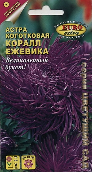 Callistephus chinensis Великолепные цветы относятся к группе коготковых астр. Эти растения ранние, имеют пирамидальный тип роста, в высоту до 70 см. Диаметр соцветий до 13 см. Головки цветков состоят из большого количества длинных скрученных лепестков, загибающихся внутрь розетки, напоминающих форму когтей. С каждого растения можно получить до 10 крепких стеблей с красивыми, качественными цветами, поэтому они идеальны для срезки и прекрасно смотрятся на клумбе.